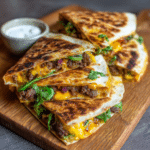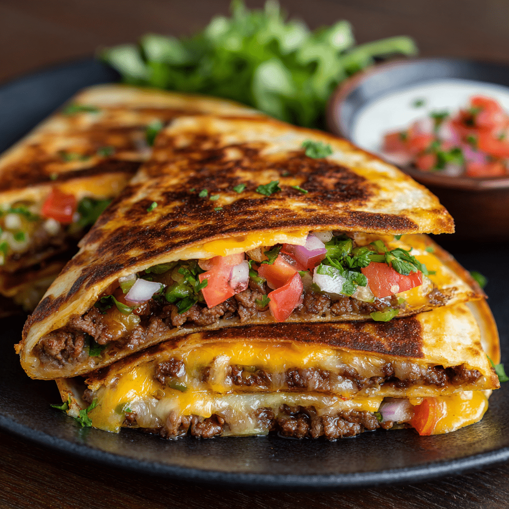 A crispy, griddle-cooked quesadilla packed with juicy cheeseburger filling, melty cheese, and classic burger flavors, made perfectly on a Blackstone or flat-top grill.