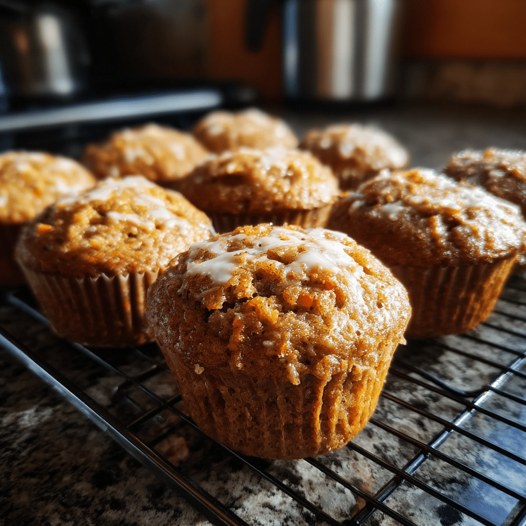 Moist and tender carrot cake muffins packed with warm spices and shredded carrots, perfect for breakfast, snacks, or dessert.