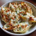Cheesy Chicken Alfredo Stuffed Shells are the ultimate comfort food, combining tender pasta, creamy Alfredo sauce, juicy chicken, and melted cheese into one irresistible dish. Each jumbo shell is generously filled with a rich chicken and cheese mixture, then baked in a velvety Alfredo sauce until bubbly and golden. The result is a hearty, satisfying meal that feels both indulgent and homemade. The first time I prepared this dish, it quickly became a family favorite because it offers the familiar flavors of chicken Alfredo in a more elevated, crowd-pleasing format. The stuffed shells hold the creamy filling beautifully, ensuring every bite is balanced and flavorful. Whether you are planning a cozy weeknight dinner or preparing a dish to impress guests, this recipe delivers comfort, richness, and simplicity in every serving.