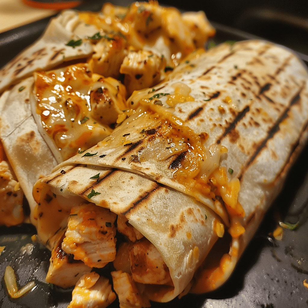Cheesy Garlic Chicken Wraps are warm, toasted tortillas filled with juicy garlic-seasoned chicken, melted cheese, and fresh toppings for a quick, flavorful meal.