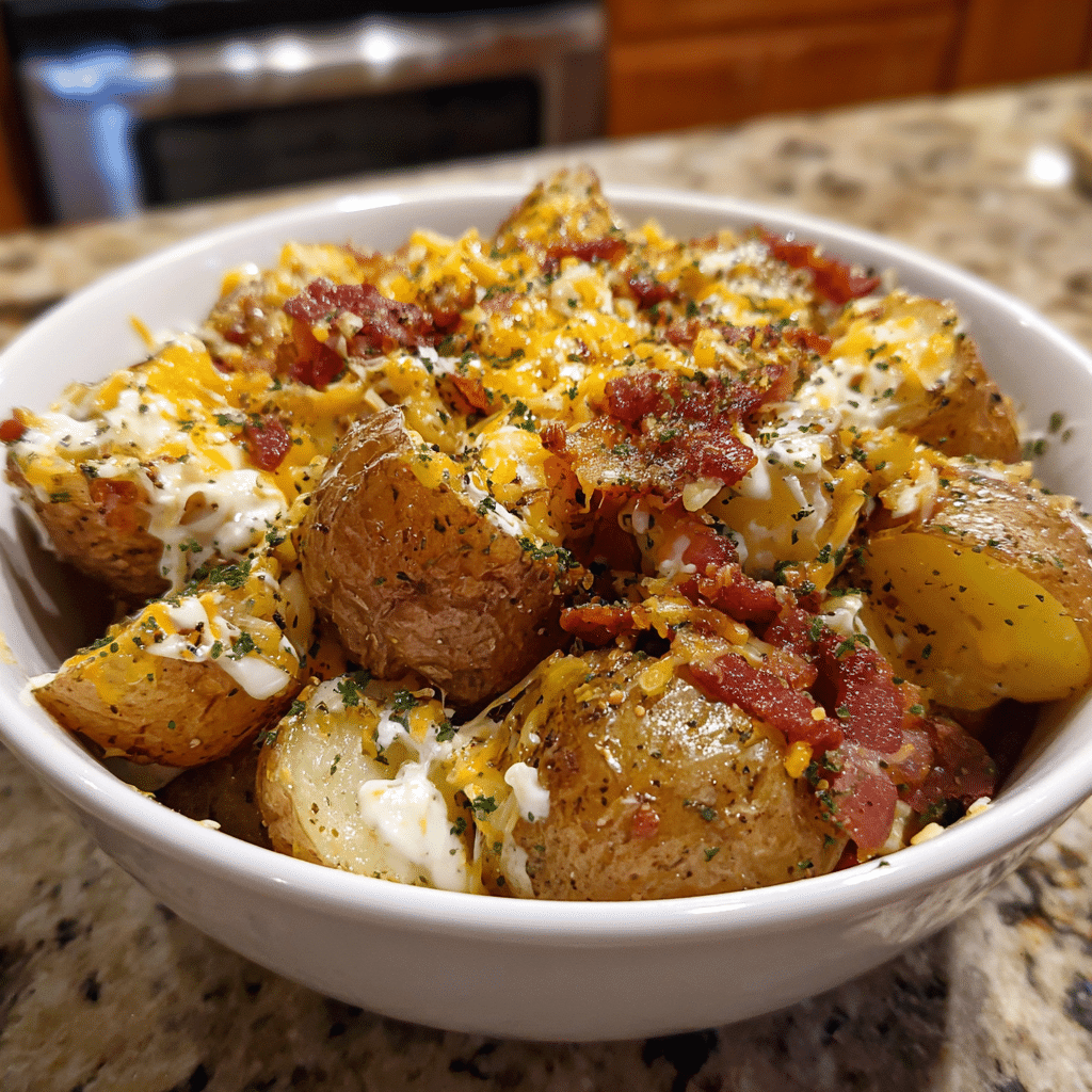 A hearty comfort dish combining tender roasted potatoes, smoky sausage, melted cheese, and classic ranch seasoning.