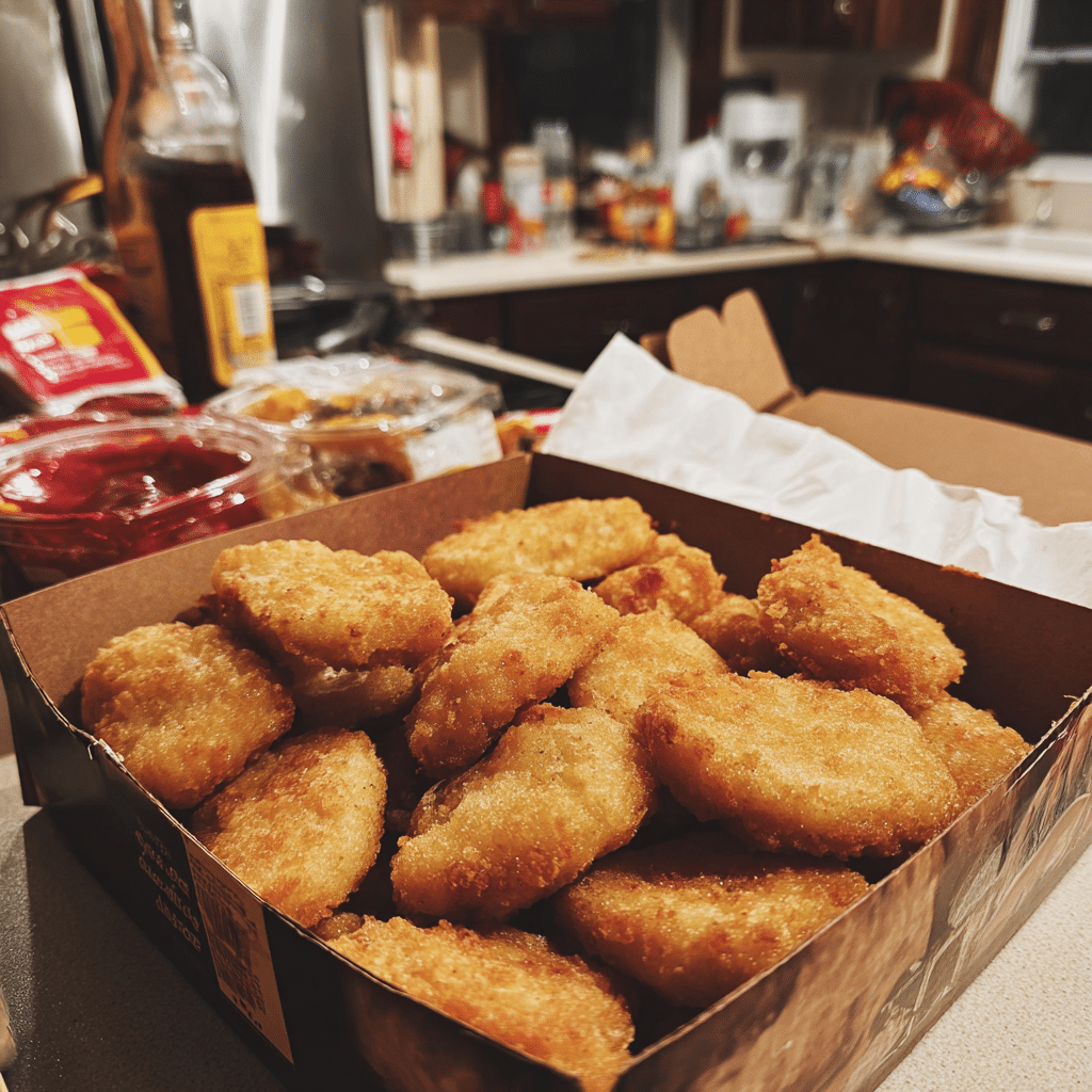 Cooking too many nuggets at once lowers the oil temperature, which can make the coating greasy instead of crispy.