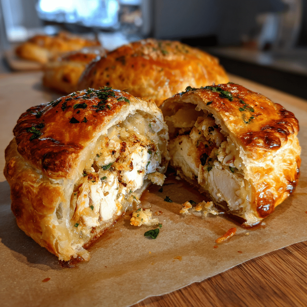 This recipe is simple yet impressive, making it suitable for casual gatherings or special occasions. The flaky puff pastry delivers a bakery-style texture without complicated techniques. The filling is creamy, flavorful, and easily adaptable to personal taste. It can be prepared in advance and baked when needed. It is also perfect for meal prep, lunchboxes, or entertaining guests.