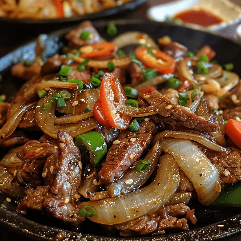 Sizzling Chinese Pepper Steak with Onions is a flavorful stir-fry featuring tender strips of beef cooked with crisp bell peppers and sweet onions in a rich, savory soy-based sauce. Served hot and sizzling, it’s a restaurant-style dish that’s quick, easy, and full of bold Asian flavors.
