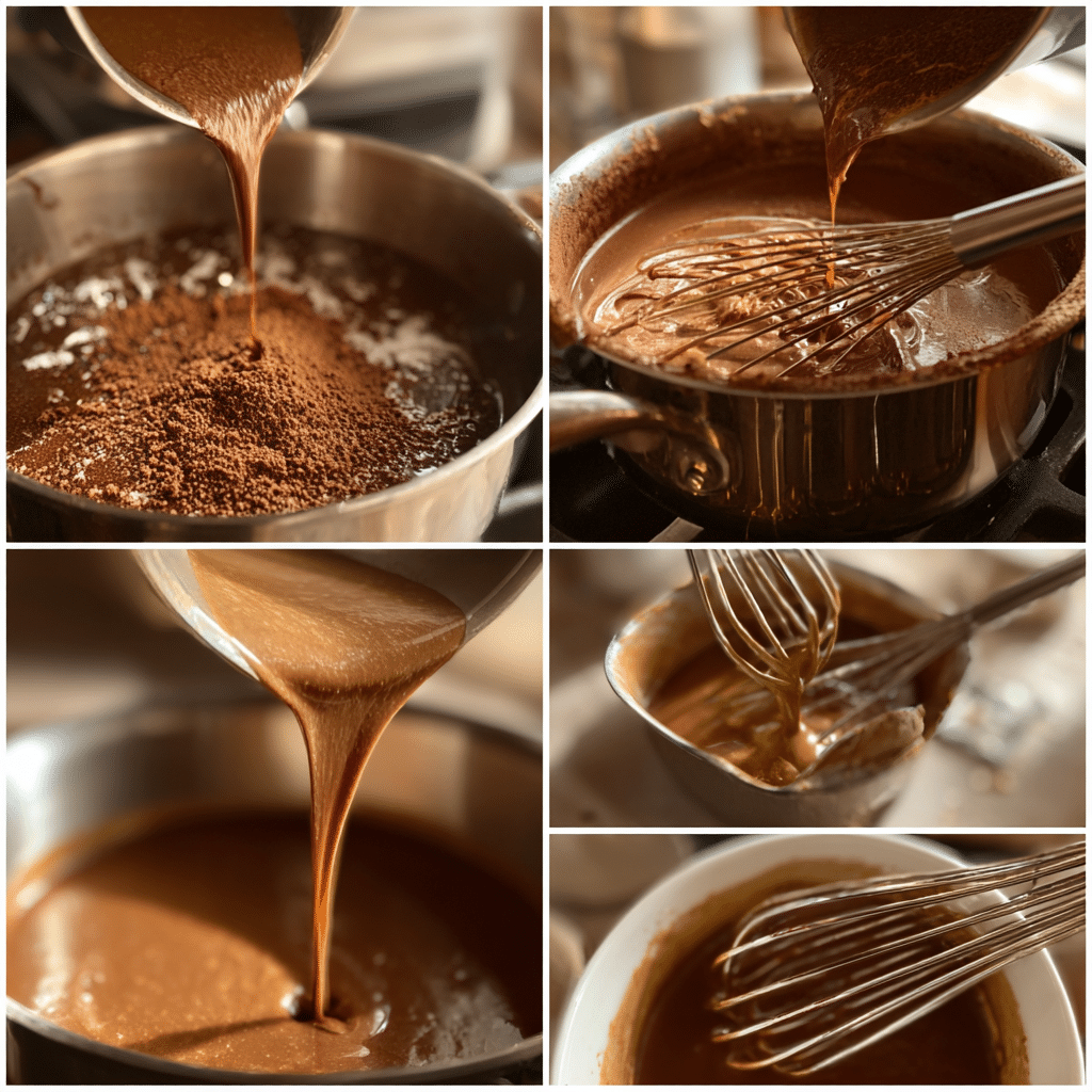 - In a saucepan, whisk together sugar, cocoa powder, cornstarch, and salt.