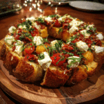 A Christmas Bruschetta Wreath is the ideal holiday appetizer for those who want something beautiful, flavourful, and remarkably simple to prepare. This dish transforms classic bruschetta into a stunning wreath-shaped display that instantly elevates any festive table. The vibrant colours of ripe tomatoes, fresh basil, and golden toasted bread create a cheerful presentation that captures the spirit of the season. I once tried making this using a mix of cherry tomatoes and sun-dried tomatoes, and the extra depth of flavour was extraordinary. The wreath format not only looks impressive but also makes serving effortless. Whether you are hosting a large gathering or preparing a cosy holiday meal, this bruschetta wreath offers elegance, freshness, and irresistible taste in every bite.