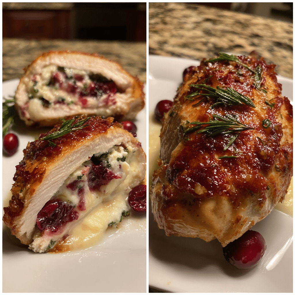 Elegant yet easy, this cranberry Brie stuffed chicken combines juicy chicken breasts with creamy melted Brie and tangy cranberry sauce — perfect for holiday dinners or special occasions.