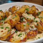 Creamy Garlic Sauce Baby Potatoes are tender, buttery baby potatoes tossed in a luscious, garlicky cream sauce with Parmesan and herbs. This comforting side dish is rich, flavorful, and pairs beautifully with chicken, steak, or seafood — perfect for family dinners or special occasions.