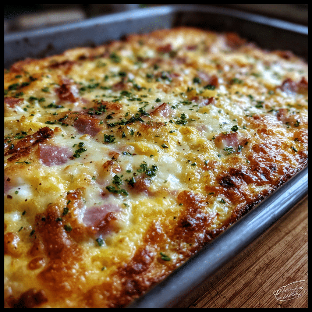 Creamy Ham and Egg Breakfast Bake is a warm, satisfying dish that turns simple breakfast staples into a comforting, crowd-pleasing meal. With fluffy eggs, savory ham, and a rich, creamy texture, this bake is ideal for slow mornings, holiday brunches, or make-ahead breakfasts during busy weeks. I often prepare this recipe when I want something filling that can be assembled in advance and baked fresh in the morning. The flavors are familiar and comforting, yet the creamy base makes it feel a little more special than standard eggs and toast. What makes this breakfast bake especially appealing is its versatility. It works beautifully for feeding a family, hosting guests, or prepping meals ahead of time. Easy, hearty, and deeply comforting, Creamy Ham and Egg Breakfast Bake is the kind of recipe that earns a permanent place in your breakfast rotation.