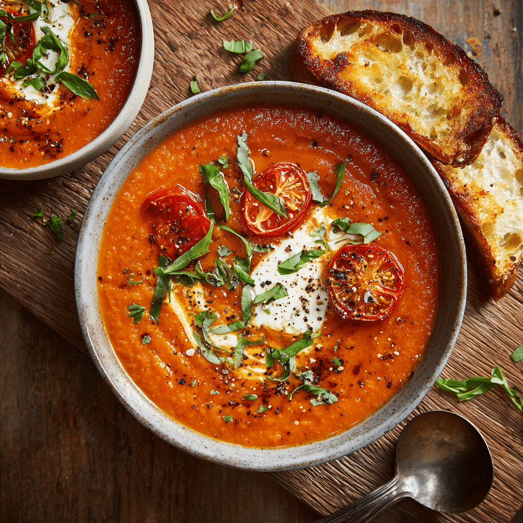 This creamy tomato soup is easy to adapt. For a dairy-free version, substitute coconut milk or cashew cream for heavy cream. The result remains smooth and flavorful, with a slightly different richness.