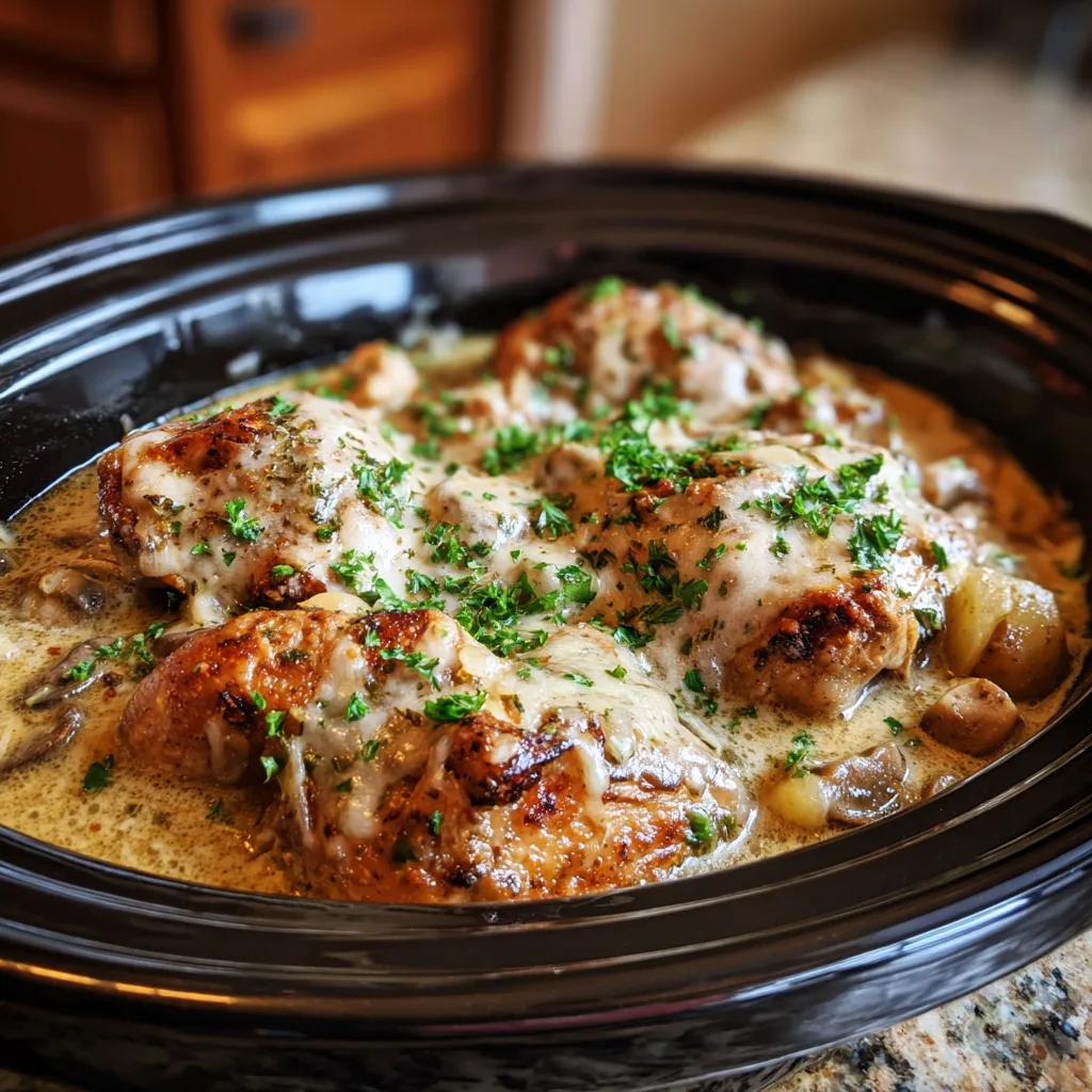 Chicken breasts become tender and juicy when slow-cooked, absorbing all the rich flavors of the sauce.