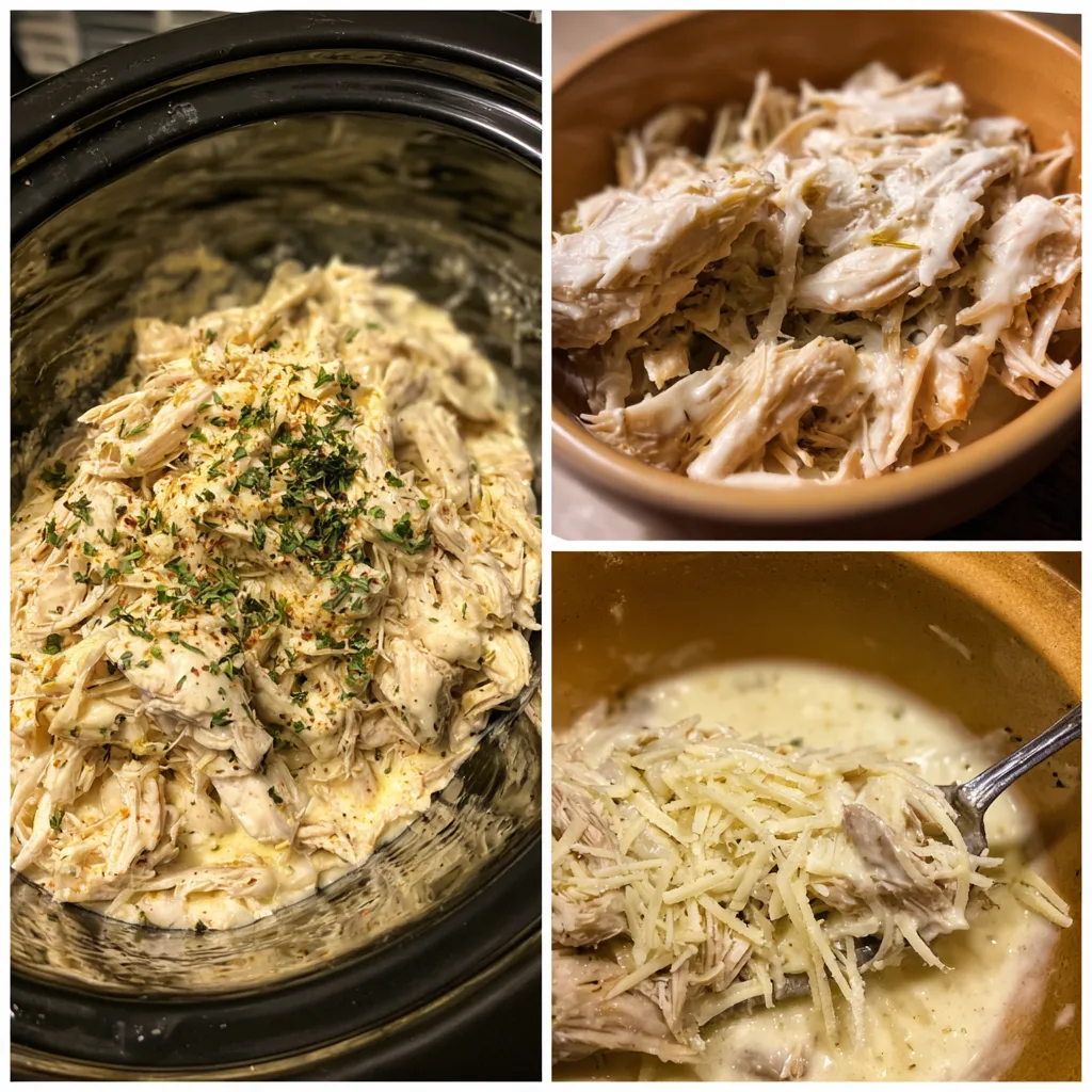A creamy and savory crockpot Olive Garden chicken made with tender slow-cooked chicken, Italian dressing, cream cheese, and Parmesan, perfect served over pasta or rice.