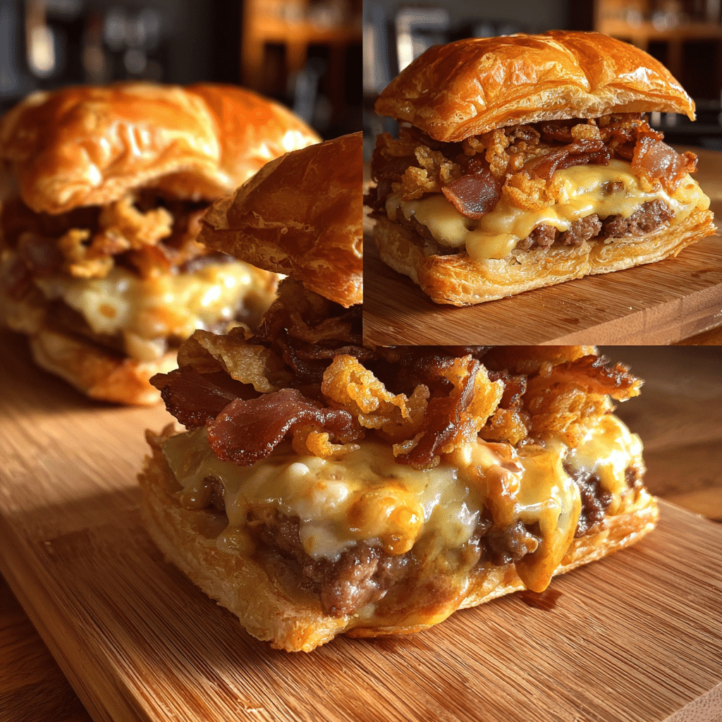 This recipe delivers juicy burgers with crisp edges, rich buttery flavor from croissants, and quick cooking time. It feels indulgent yet approachable and can be customized easily with different cheeses and toppings.