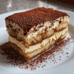 An easy gluten free tiramisu cake featuring soft coffee-infused sponge layers and a creamy mascarpone filling, finished with a dusting of cocoa powder. A classic Italian-inspired dessert made gluten free without sacrificing flavor.