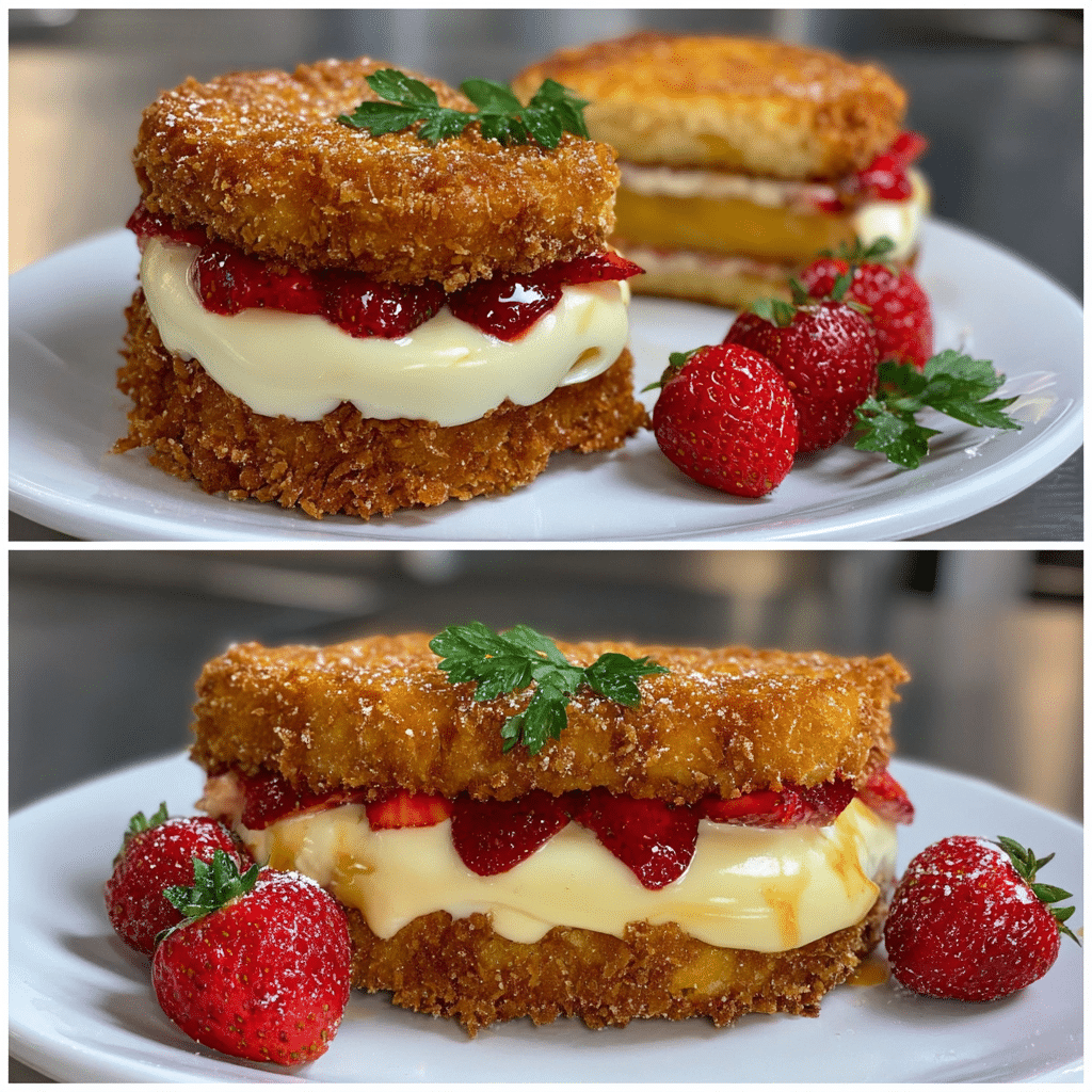 Fried Strawberry Cheesecake Sandwiches are a decadent dessert that feels straight out of a fairground or specialty dessert café. They combine the rich creaminess of cheesecake filling with sweet strawberries, all wrapped between slices of bread and fried until golden and crisp. The contrast of textures is what truly makes this recipe special: a crunchy exterior gives way to a warm, creamy center that melts in your mouth. I tested this recipe using different breads, and soft white bread delivered the best balance between structure and tenderness. These sandwiches are surprisingly simple to prepare, yet they look impressive when served. Whether you are making a special dessert for guests or treating yourself to something indulgent, this recipe delivers comfort, nostalgia, and bold flavor in every bite.