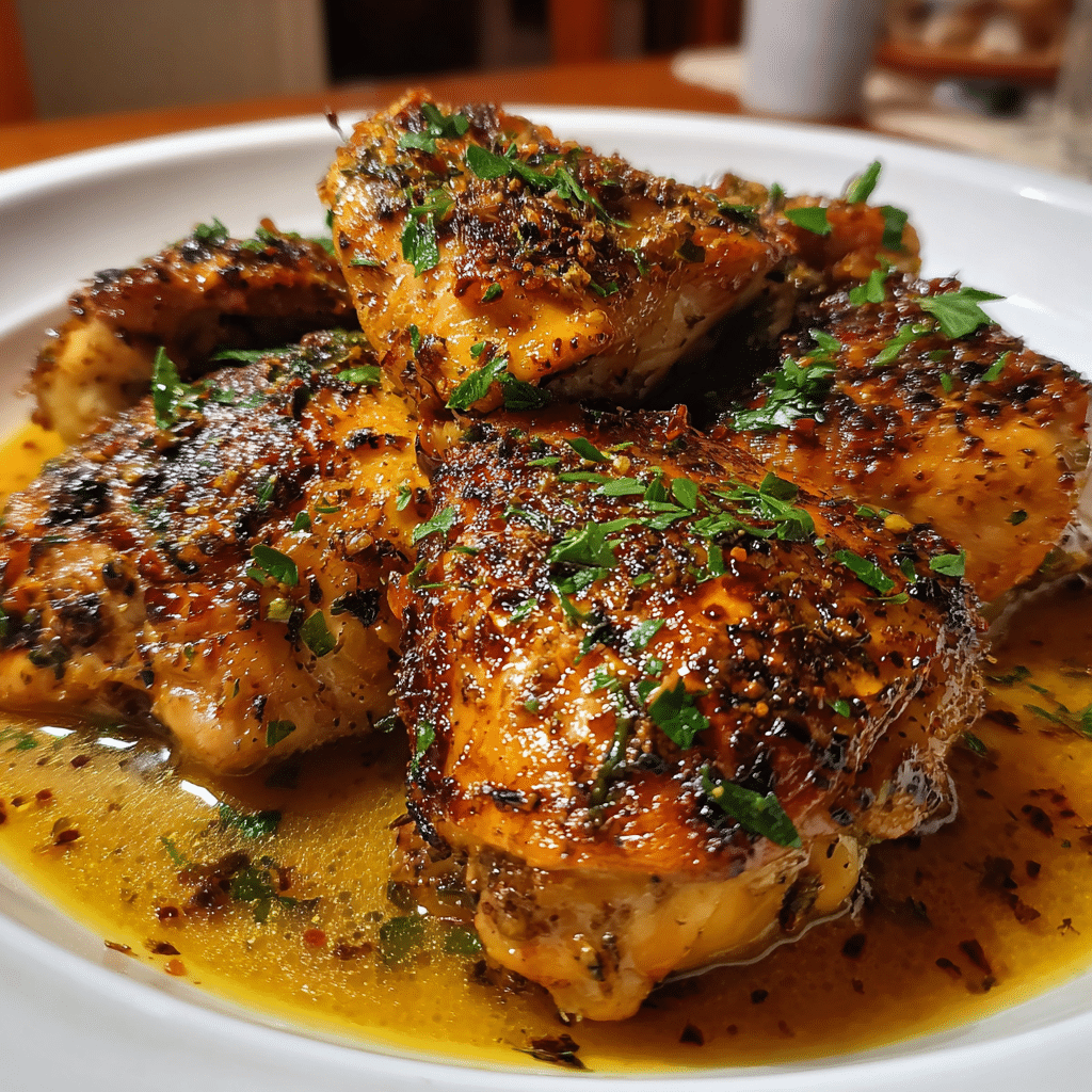 Return the chicken to the skillet, spooning the sauce over the top. Reduce heat and simmer gently until the chicken is fully cooked and the sauce thickens slightly, coating the chicken evenly. Garnish with fresh herbs before serving.