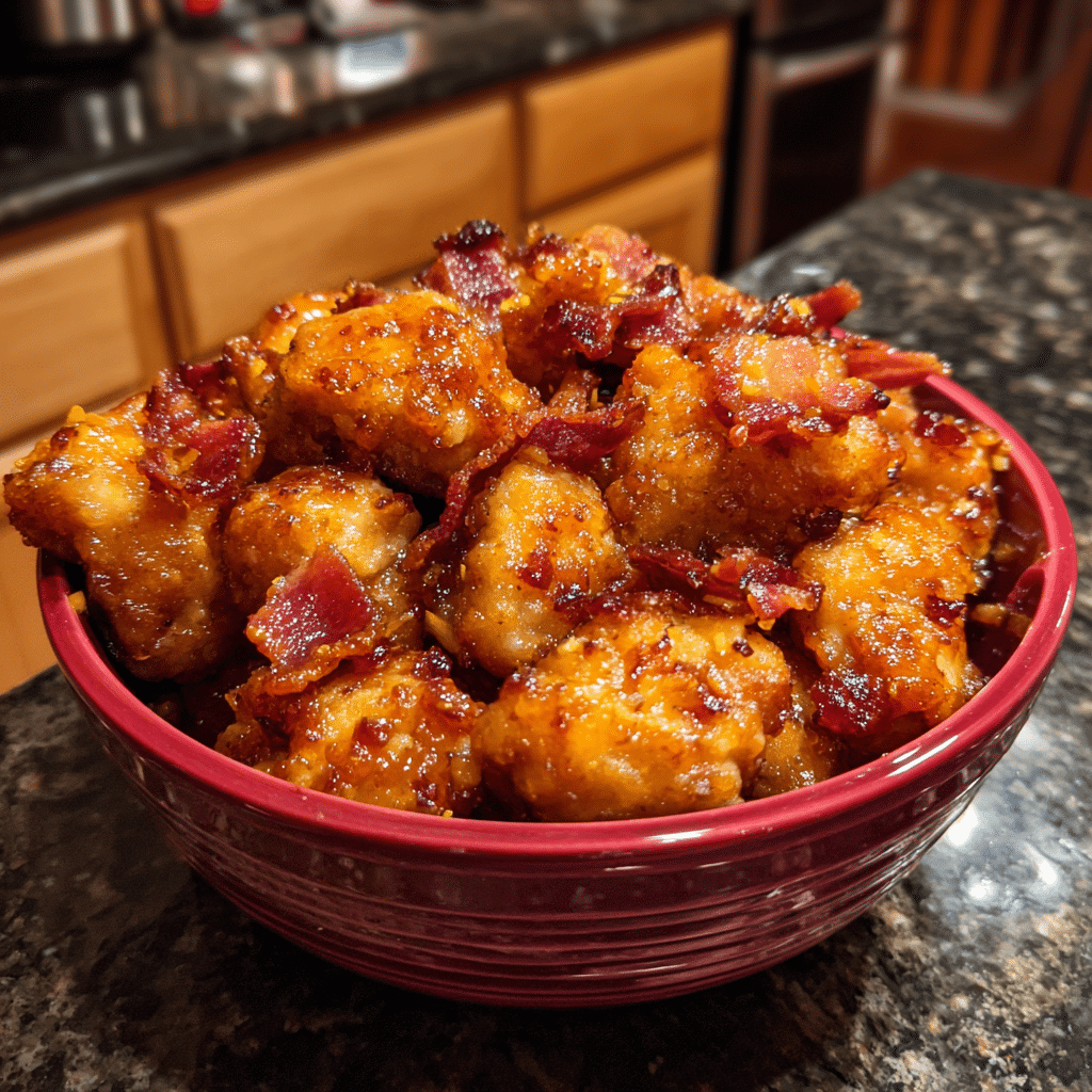 Crispy, juicy chicken bites wrapped in smoky bacon and glazed with spicy hot honey — the ultimate sweet, savory, and spicy appetizer or snack.