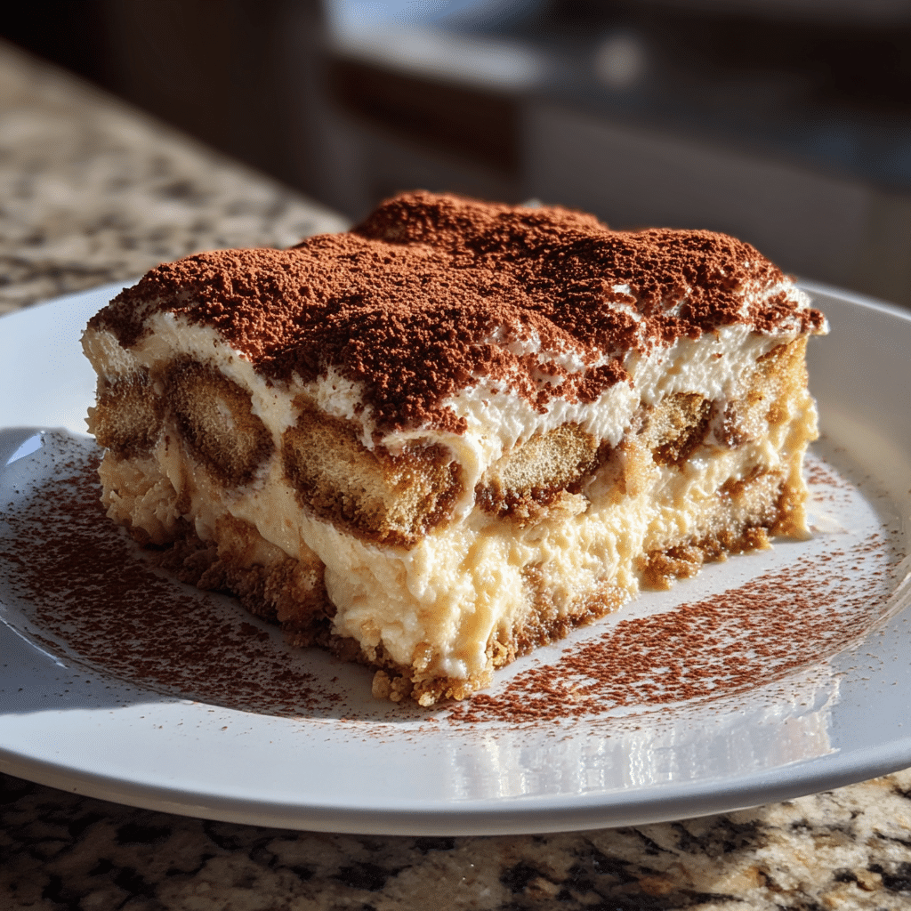 Italian Tiramisu is a classic no-bake dessert made with layers of espresso-soaked ladyfingers, rich mascarpone cream, and a dusting of cocoa powder, known for its light yet indulgent texture.