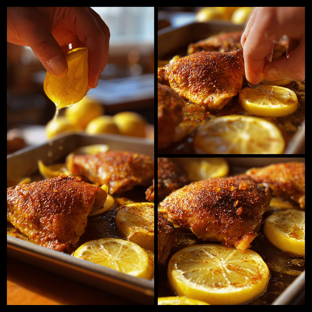 Juicy and flavorful chicken thighs roasted to perfection with a zesty lemon and smoky paprika seasoning for a delicious meal.