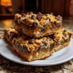 They’re layered dessert bars made with a graham cracker crust, condensed milk, chocolate, coconut, and nuts — baked to gooey perfection.