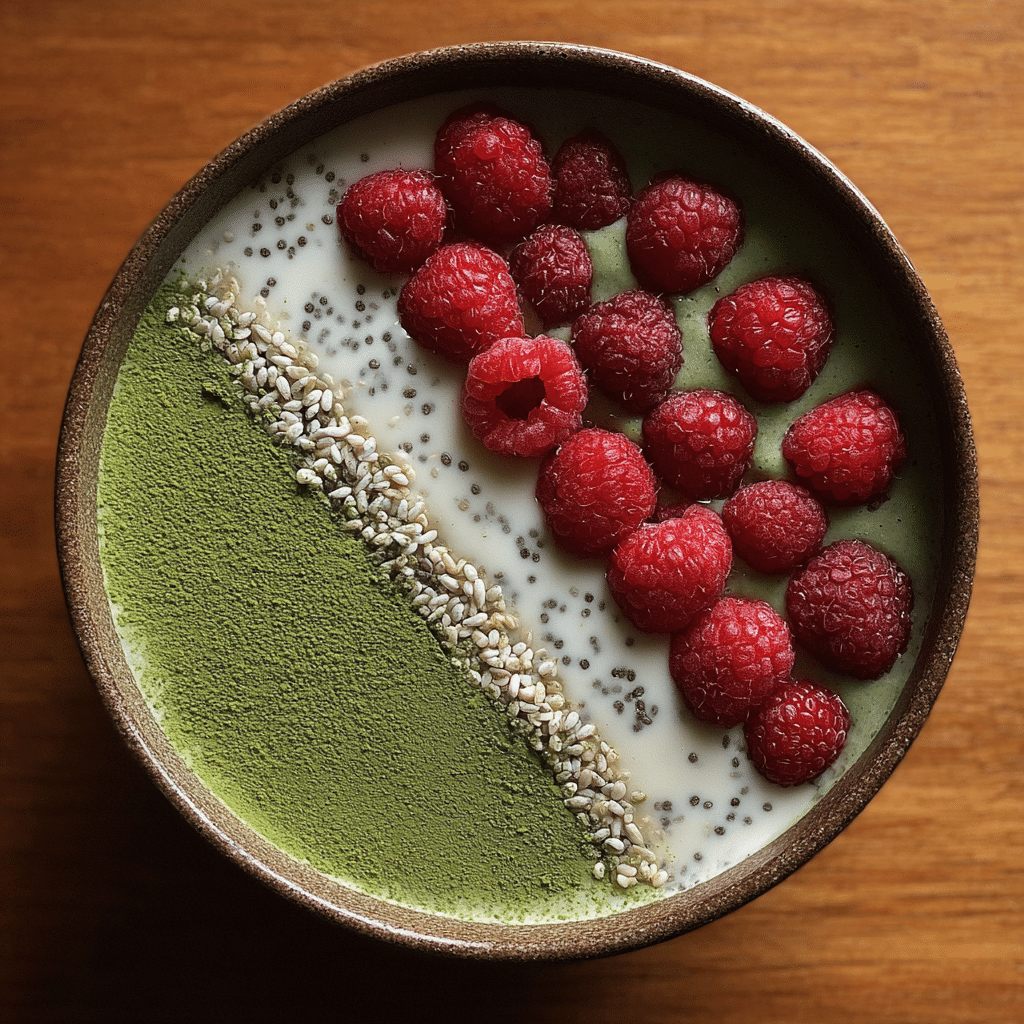 Raspberries add bright acidity and natural sweetness that balance the earthiness of matcha.