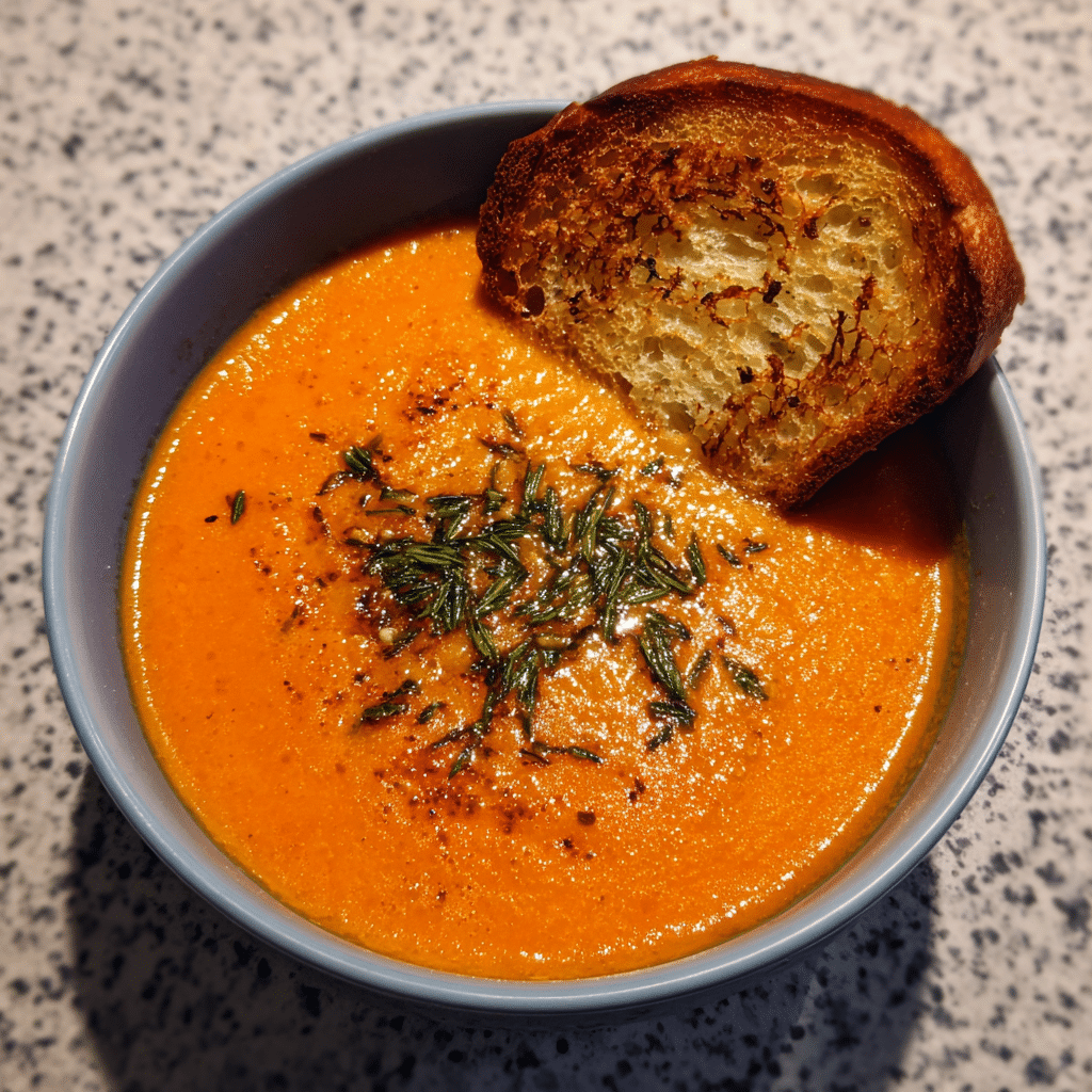 Roasted Tomato Upgrade – Roast the canned tomatoes with olive oil and herbs before blending for a deeper, smoky flavor.