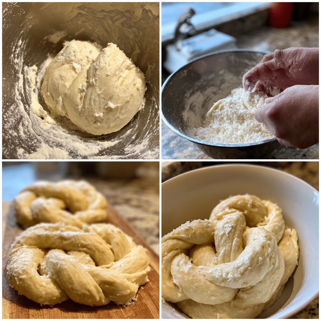 - Add flour, salt, and melted butter. Mix until a dough forms, then knead for 5–7 minutes until smooth and elastic.