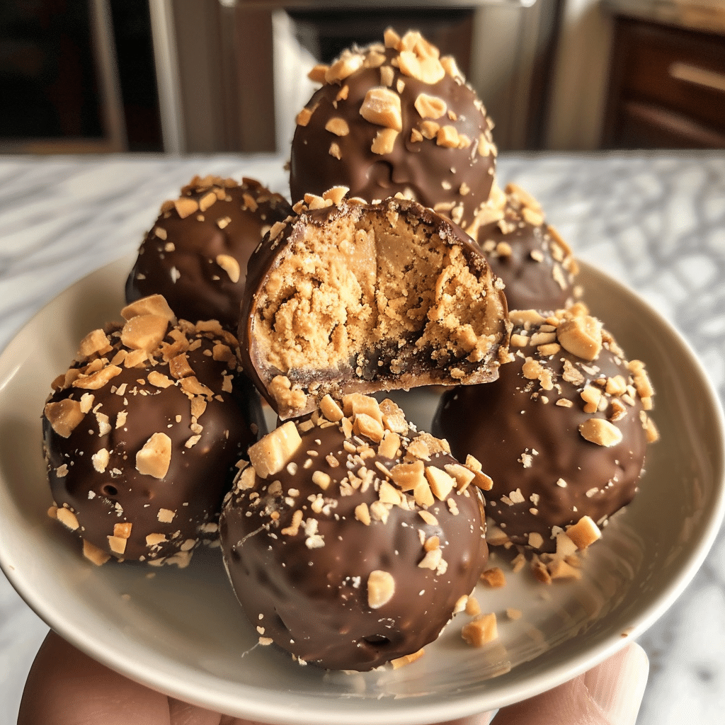 Quick, creamy no-bake peanut butter cheesecake balls coated in chocolate—perfect bite-size dessert treats.