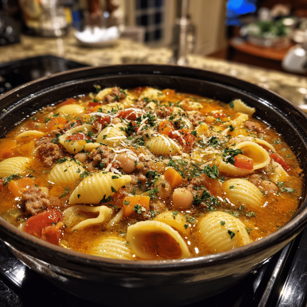 Pasta Fagioli with Sausage is a hearty, comforting Italian-style soup made with savory sausage, tender pasta, beans, tomatoes, and aromatic herbs—a warm, filling meal perfect for any season.