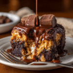 If you are looking for a rich, indulgent dessert that requires minimal effort but delivers maximum flavor, Peanut Butter Cup Dump Cake is the answer. This dessert combines the irresistible pairing of chocolate and peanut butter into a warm, gooey cake that practically makes itself. The beauty of a dump cake lies in its simplicity—no complicated mixing, no layering techniques, and no special skills required. I first made this recipe for a last-minute gathering when I needed something quick yet impressive, and it disappeared within minutes. The melted peanut butter cups create pockets of creamy sweetness, while the chocolate cake base turns soft and fudgy underneath a slightly crisp topping. It is perfect served warm with a scoop of vanilla ice cream or a drizzle of extra peanut butter. Whether for holidays, potlucks, or weeknight cravings, this dessert is always a guaranteed crowd-pleaser.