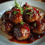Quick Christmas Cranberry Meatballs bring together the perfect balance of sweet, tart, and savory—ideal for busy holiday gatherings when you need something impressive yet effortless. These meatballs simmer in a glossy cranberry sauce that feels festive without weighing you down with complicated preparation. I once tried swapping the standard stock with a splash of almond milk to soften the meat mixture, and surprisingly, it worked beautifully, keeping everything tender. This dish fits seamlessly into potlucks, open houses, and Christmas buffets, delivering a crowd-pleasing appetizer that requires minimal oversight. Whether you prepare them entirely from scratch or rely on frozen meatballs for convenience, the result is always comforting and celebratory. The aroma itself feels like Christmas, and the combination of pantry-friendly ingredients means you can whip this up even when holiday chaos peaks. It is a reliable recipe that never disappoints and always vanishes quickly.