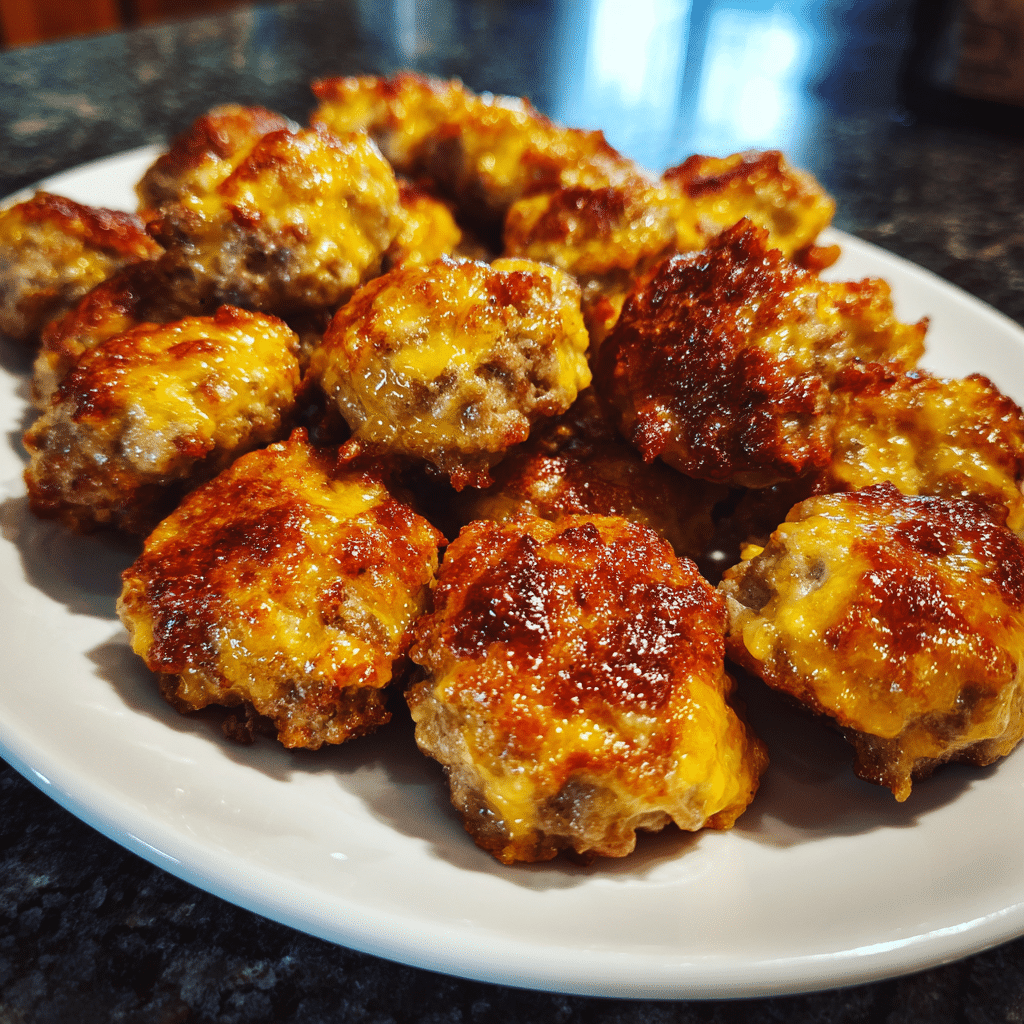 - Bake for 20–25 minutes or until the sausage balls are golden brown and cooked through.