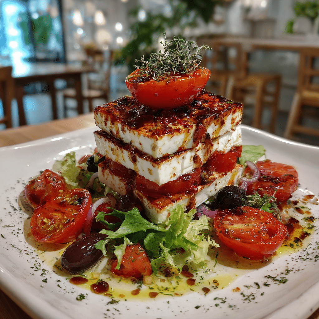 Santorini Feta Stack Salad: A Fresh Mediterranean-Inspired Showstopper