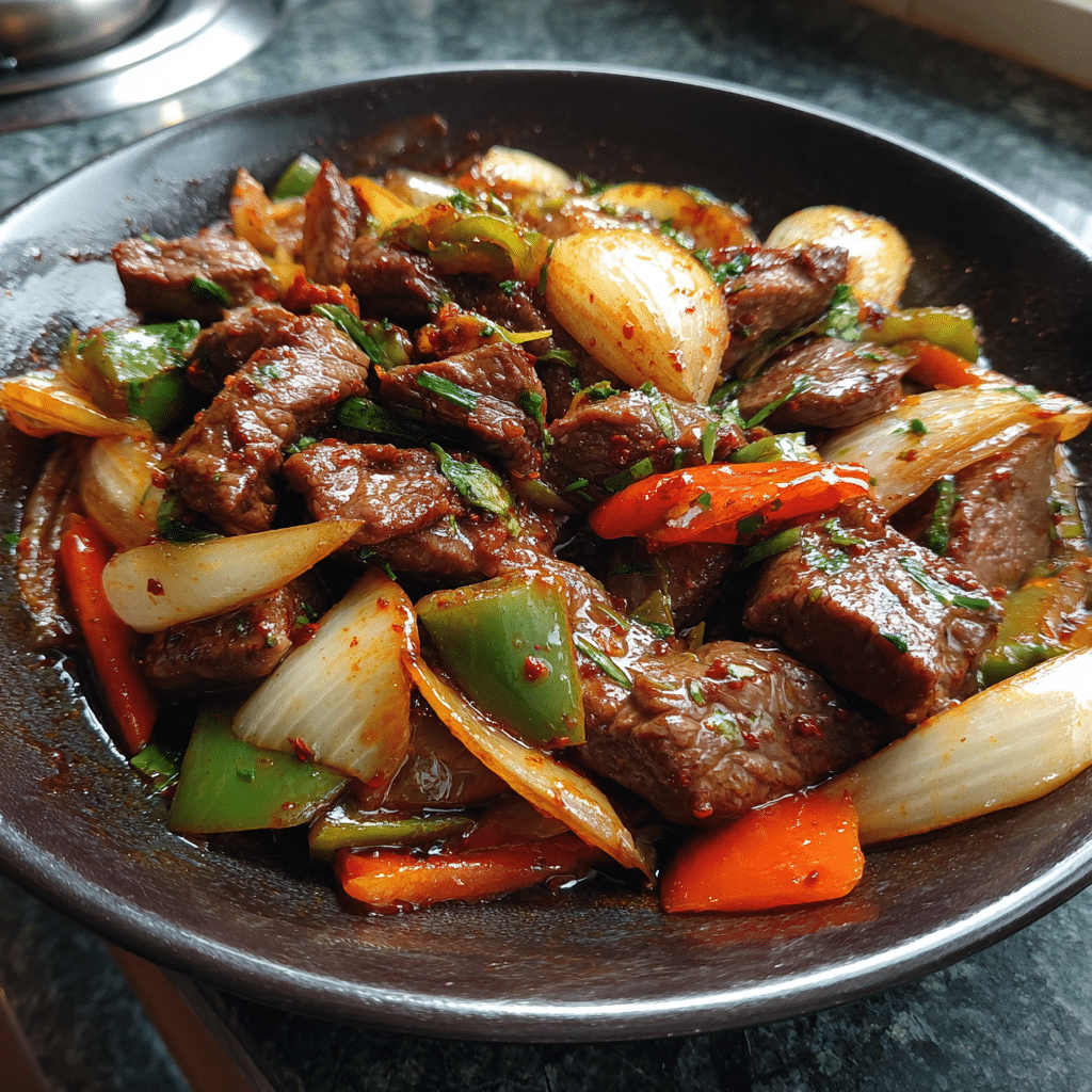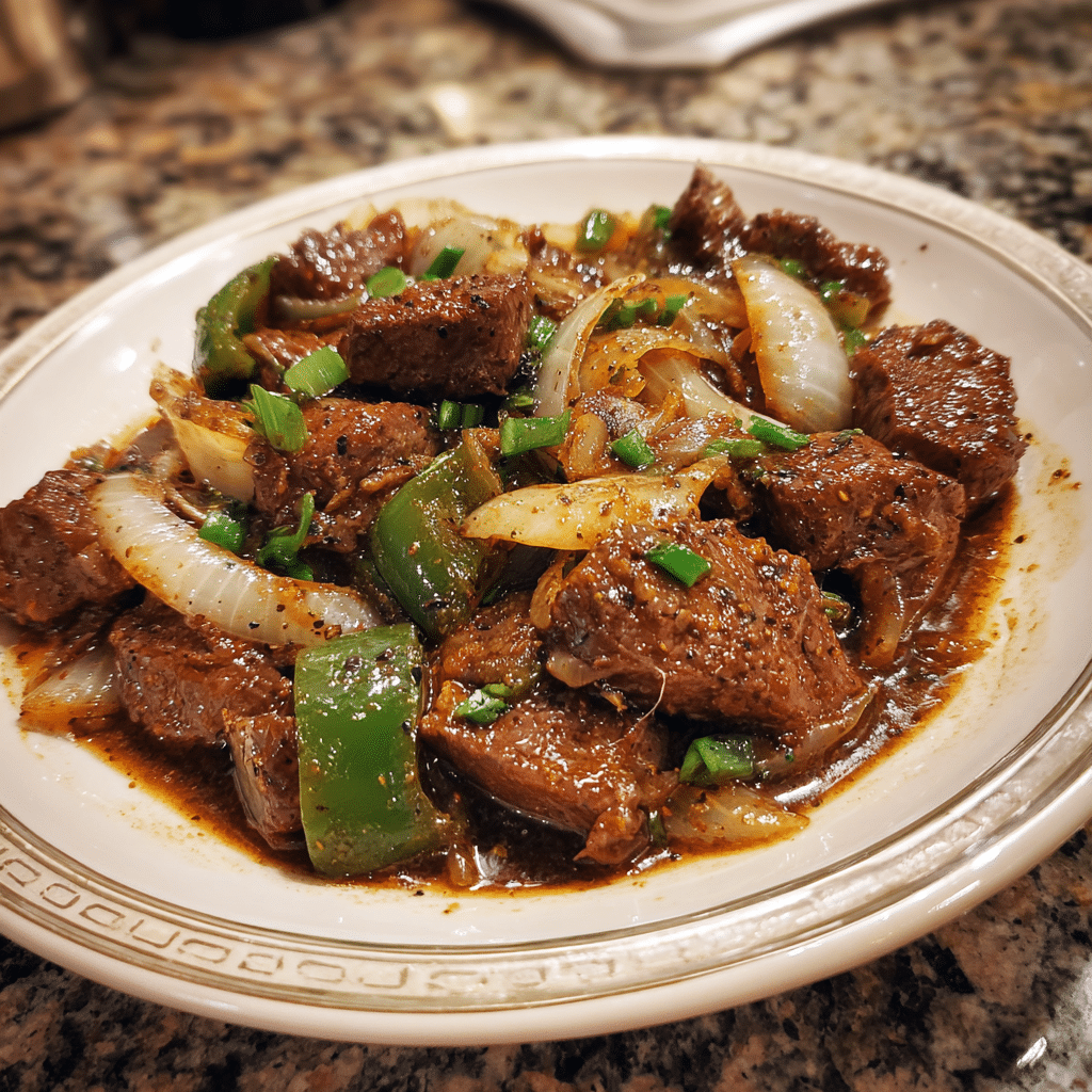 Sizzling Chinese Pepper Steak with Onions is a restaurant-style classic that you can easily make in your own kitchen. Tender strips of beef are stir-fried with crisp bell peppers and onions, all coated in a savory soy-based sauce that’s slightly sweet, garlicky, and full of umami. The result is a sizzling, aromatic dish that pairs perfectly with steamed rice or noodles. What makes this recipe special is how quick and versatile it is—you can have dinner on the table in under 30 minutes. I once tried adding mushrooms to the mix, and it gave the dish an earthy depth that worked beautifully. Whether you’re craving Chinese takeout flavors or looking for a weeknight dinner that impresses, this pepper steak recipe delivers bold taste and sizzling satisfaction every time.