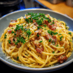 Spaghetti Carbonara is one of the most iconic Italian pasta dishes, celebrated for its simplicity and bold flavor. Made with just a handful of ingredients, this recipe relies on technique rather than complexity to create its signature creamy texture—without using cream. The sauce is formed by silky egg yolks, sharp cheese, and rendered pork fat, coating each strand of pasta beautifully. I have prepared carbonara many times, and the key is timing: tossing everything together while the pasta is hot but off the heat creates a smooth, luxurious sauce instead of scrambled eggs. This dish is perfect for quick dinners, yet it feels indulgent and restaurant-worthy. Once mastered, Spaghetti Carbonara becomes a reliable go-to that delivers comfort, richness, and authentic Italian flavor every time.