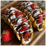 Strawberry Crunch Cheesecake Tacos are a delightful dessert fusion that captures the heart of a classic cheesecake and the fun of handheld treats. With their crisp shells, creamy filling, and crunchy strawberry topping, these tacos deliver pure joy in every bite. Whether for family gatherings, parties, or a weekend indulgence, they’re as beautiful as they are delicious—simple to make, endlessly customizable, and guaranteed to impress anyone lucky enough to try them.